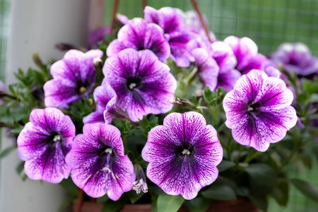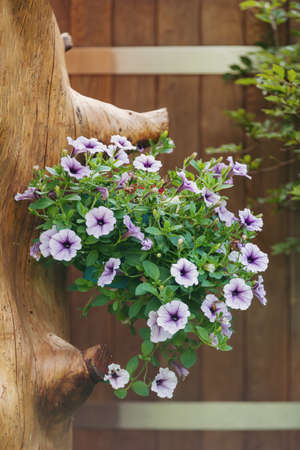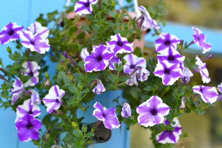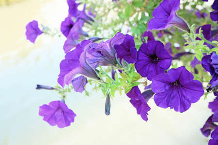 Close-up of Violet Flower petunia (Petunia integrifolia) flower. Hanging in a flowerpot.