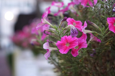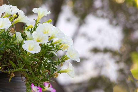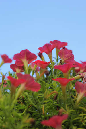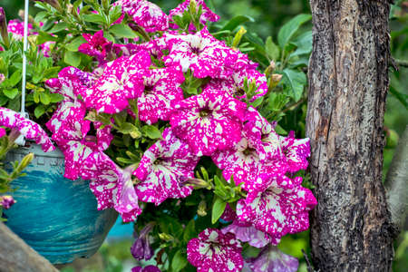 Petunia, Petunia in a pot for decorating the streets against the blue sky
