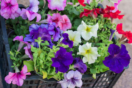 Beautiful multicolored Petunia flowers ready to be planted in the garden