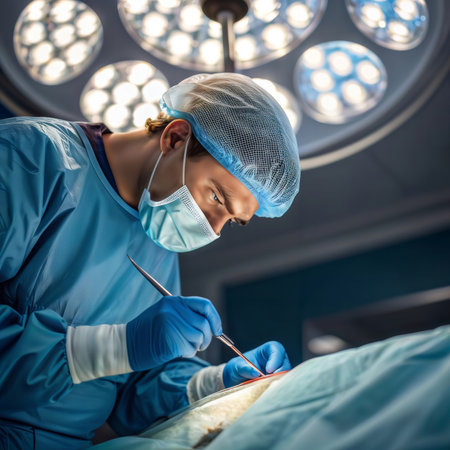Skilled surgeon expertly performing intricate operation in a state of the art operating room