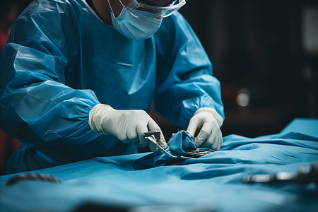 Expert surgeon performing precise surgical procedure in sterile operating room setting