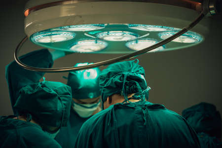 Group and teamwork of surgeons in hospital operating theater. Teamwork medical doctor working performing surgery
