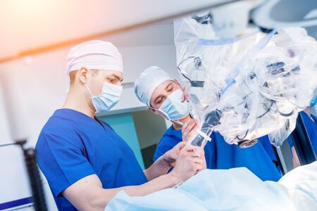 Modern surgical system. Medical robot. Minimally invasive robotic surgery.