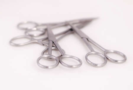 Bunch of surgical scissors on a white background ,shallow depth of field image.