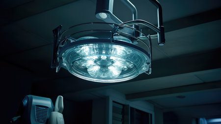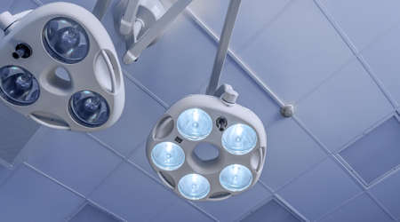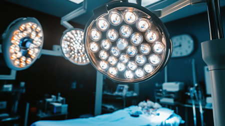 Bright surgical lights illuminate a modern operating room prepared for a medical procedure
