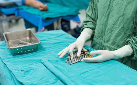 Traumatology orthopedic surgery hospital emergency operating room instrument nurse instrumentation instruments prepared for arthroscopy operation photo.