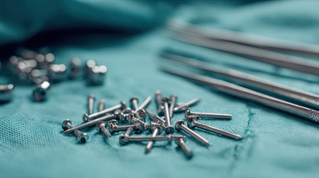 A collection of various tools spread out on a table for easy access during a project, Surgical instruments in a surreal art style, AI Generated