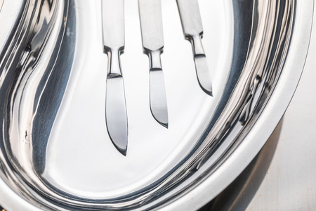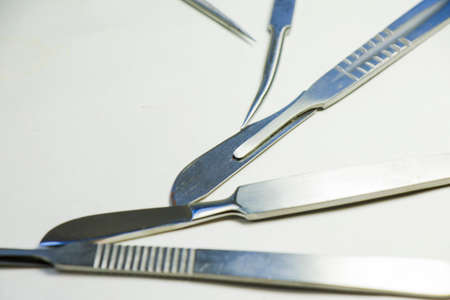 Modern medical instruments surgeon, scalpel set. Medical methods surgical treatment. Operations are performed using special tools. Lack cosmetic defects in postoperative scars and scars