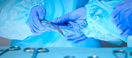 Expert surgeon performing precise surgical procedure in sterile operating room setting
