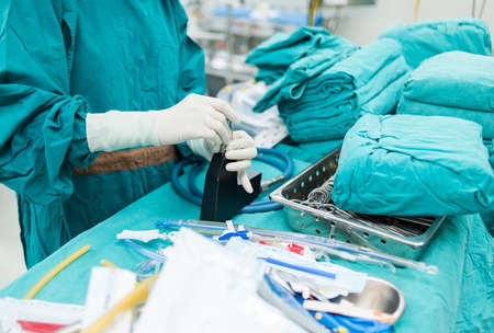 scrub nurse prepare medical equipments for surgery