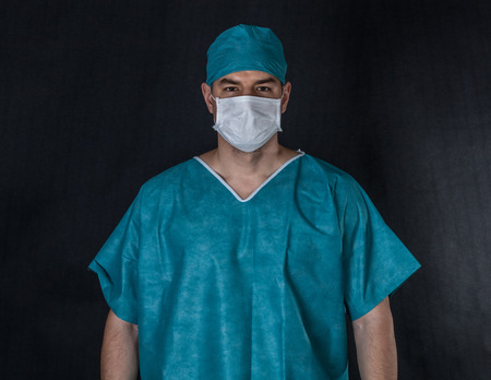 Surgeon in scrubs on a black background