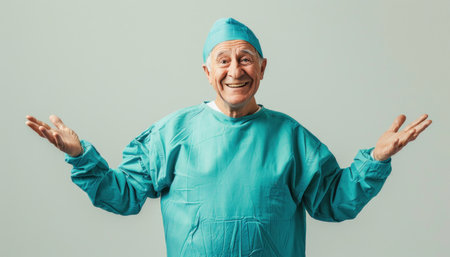 Skilled Male Surgeon in Scrubs on isolated white background.