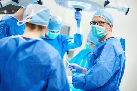 Portrait of a successful medical surgeon team inside operating room