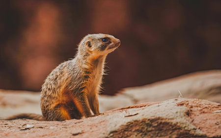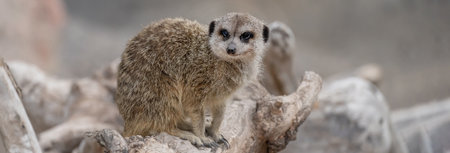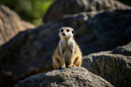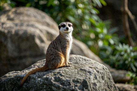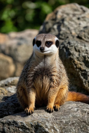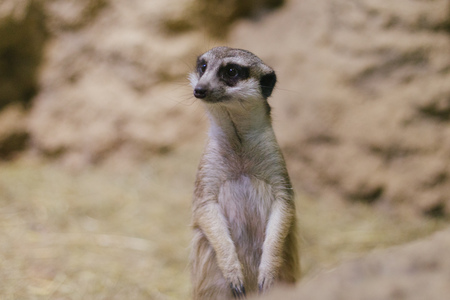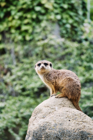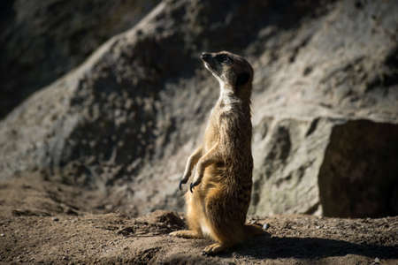 Meerkat sitting on a rock in a zoo. Wildlife animal.