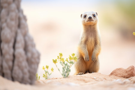 mongoose standing alert near desert plants