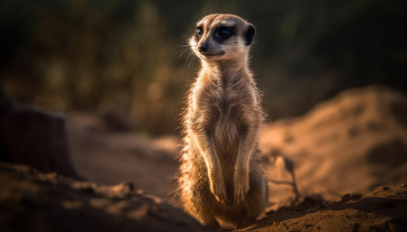 Small meerkat standing alert, watching wildlife in Africa generated by artificial intelligence