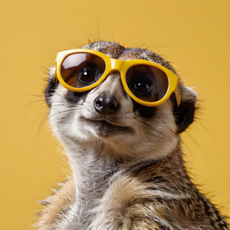 Portrait of a meerkat wearing sunglasses on a yellow background. generated by AI