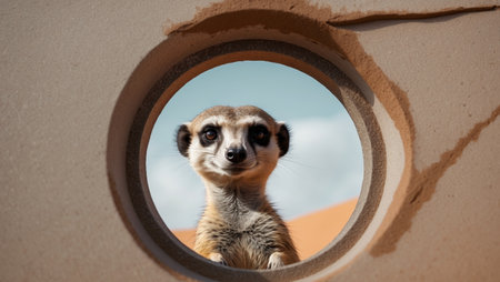 AI Generated. Curious Meerkat Peering Through a Circular Opening in the Desert