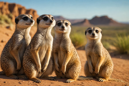 Meerkats sitting on the African grasslands