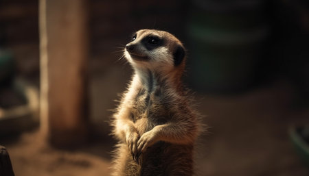 Small meerkat standing alert, watching nature beauty generated by artificial intelligence