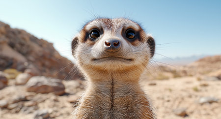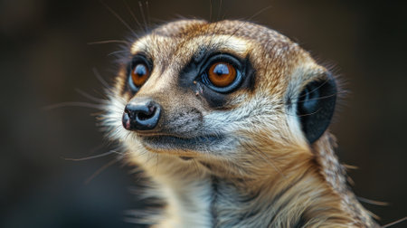 meerkats close-up shot, the intense gaze and curious nature of these charming animals. This photograph provides the meerkat's expressive face, highlighting its focused eyes and endearing features.