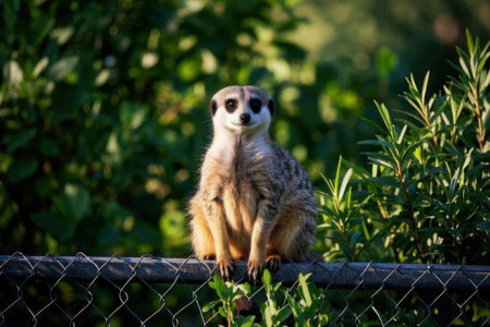Meerkat sitting on the fence in the park. Selective focus.
