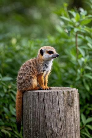 Meerkat (Suricata suricatta) sitting on a post.