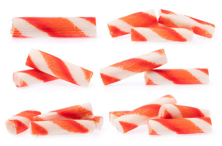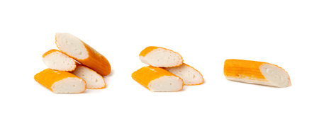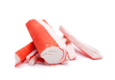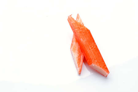 Crab Stick Isolated, Orange Crabstick Closeup, Crabmeat Food, Crabmeat Fish Sticks, Surimi Seafood, Crab Sticks on White Background