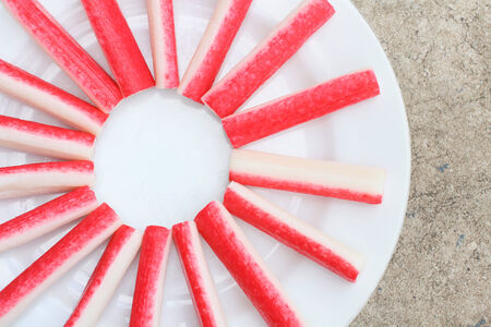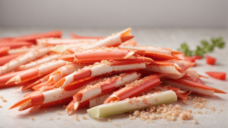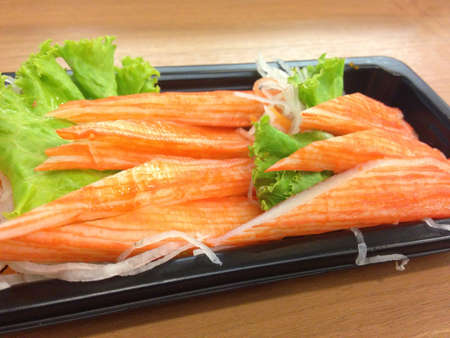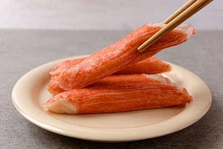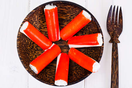 Fresh Crab Sticks Surimi Ready to Eat. Fast Food.