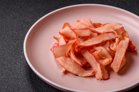 Food, dried squid in shavings or chopped as snacks or jerky. Snack dried squid for beer, background for your design