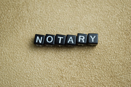 Concept of Notary written on wooden blocks. Cross processed image on Wooden Background
