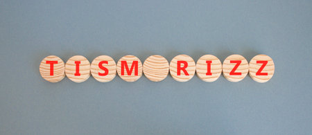 Tism rizz symbol. Concept word Tism rizz on beautiful wooden circles. Beautiful gray background. Copy space.