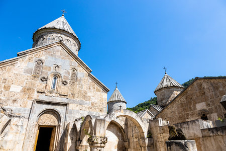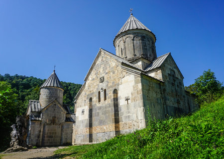 edifice of St. Astvatsatsin Church in Haghartsin Monastery near town of Dilijan in Tavush Province of Armenia on sunny summer day