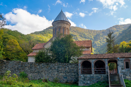 Ancient Monastery in the autumn forest. Armenian Church of Haghartsin in the gorge
