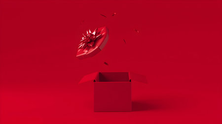 A bright red gift box erupts with vibrant confetti and ribbons, creating a joyful atmosphere filled with excitement and celebration.