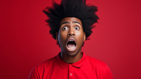 Dramatic Afro Delight: Startled Expression on Colorful Backdrop