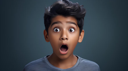 an Indian man showing surprise on a studio background