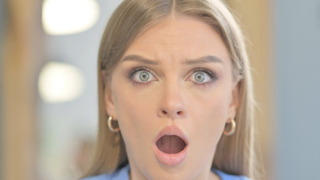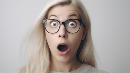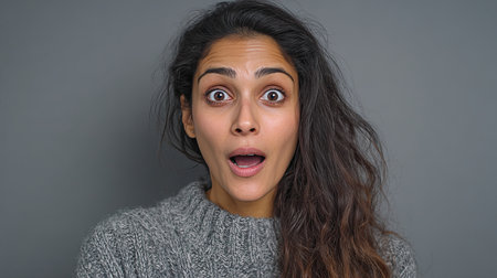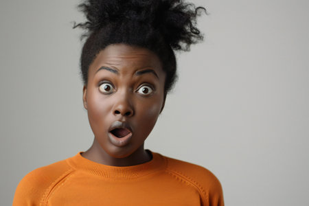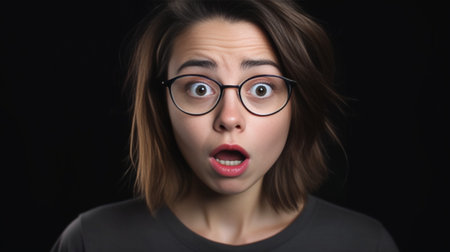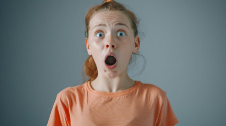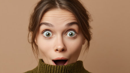 A woman with a surprised expression on her face. Suitable for illustrating shock, disbelief, or unexpected situations. Can be used in various contexts, such as advertising, articles, or blog posts.
