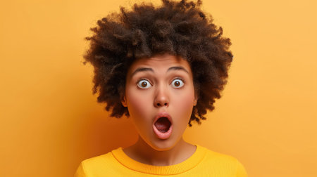 Dramatic Afro Delight: Startled Expression on Colorful Backdrop