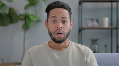 Close up biracial person open mouth wide with shock amazing reaction shocked facial expression amazed puzzled stunned astonish male face unexpected news African American man surprised wonder in city