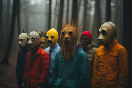Hauntingly Colorful Masks in the Foggy Woods