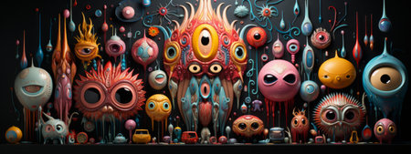 A Group of Funny and Colorful Monsters