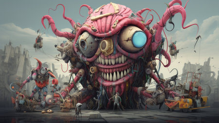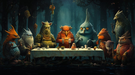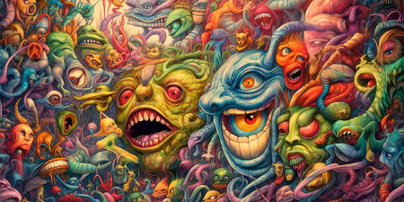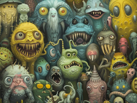 Background of many strange creatures. AI generative.