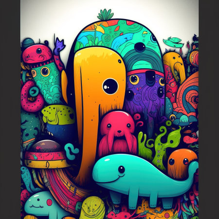 Whimsical doodles create a vibrant 3D abstract background on textured paper