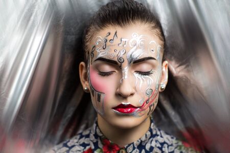 Close-up portrait of a beautiful young woman with creative make-up
