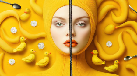 A woman with yellow hair and a zipper in her face, AI