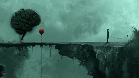 Exploring cognitive distortions through visual symbolism, showing a thought process intertwined with nature, indicating the path to positive reframing.