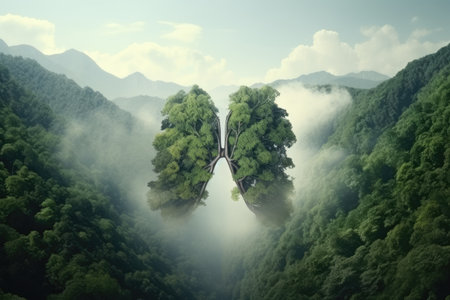 Lungs like shape in forest Trees filter air Nature s cleansing Mountains Eco idea