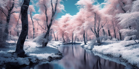 Colored magical forest. AI simulation.