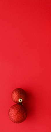 Gift decor, New Years Eve and happy celebration concept - Christmas baubles on red flatlay backdrop, luxury winter holiday card background